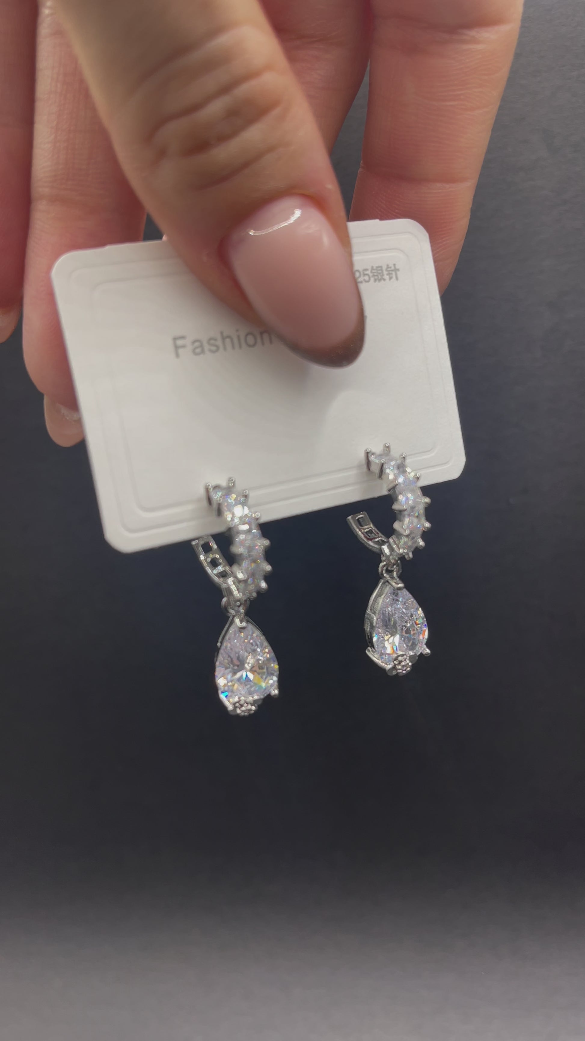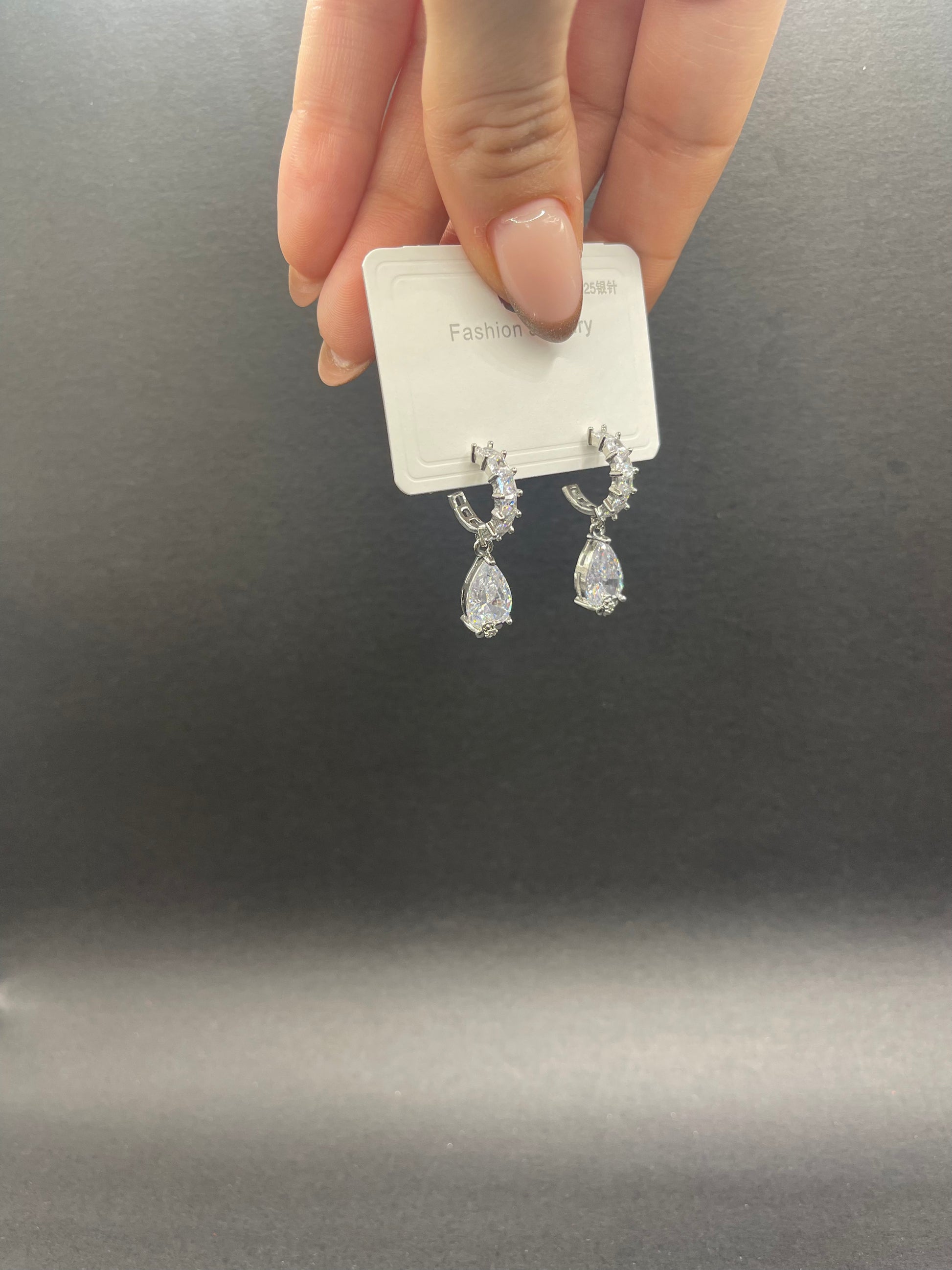 Elevate your elegance with these dazzling silver-tone teardrop crystal hoop earrings. Crafted from high-quality stainless steel,The design features a delicate row of sparkling baguette-cut crystals along the curved hoop, leading to a stunning pear-shaped crystal drop that catches the light beautifully. These earrings add the perfect touch of sophistication to any outfit.